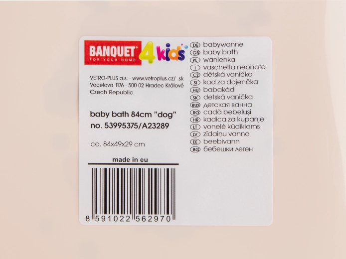 Het BANQUET-badje met Dog-decor is ontworpen voor comfortabel en veilig baden van baby’s en peuters. De ergonomische vormgeving ondersteunt het lichaam van het kind, terwijl gladde afgeronde randen zowel veiligheid als comfort verhogen. Dankzij de lichte kunststof constructie is het badje gemakkelijk te verplaatsen en schoon te houden.