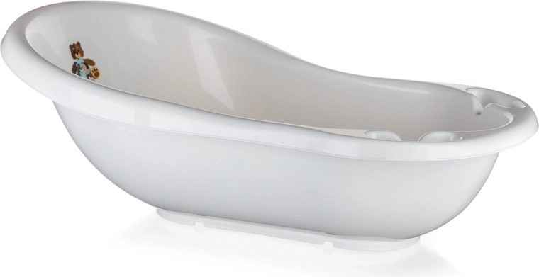 Het praktische kinderbadje BEARS met zitje is uitgerust met veel handige functies: een zachte handgreep, een afvoerstop voor het laten weglopen van water, en een praktisch kinderzitje dat in de opening van het badje kan worden gehangen. Draagvermogen 25 kg. Afvoerslang niet inbegrepen. Afmetingen: 84 x 49 x 30 cm.