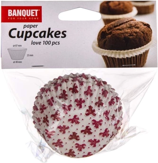 Set bakkerscupjes LOVE 8,7 cm, 100 stuks, kleurenmix, bodemdiameter 4 cm, hoogte 2,3 cm, bedoeld voor het bakken en serveren van muffins of klassieke gevulde cupcakes.