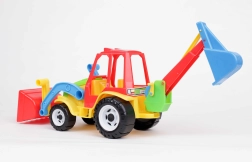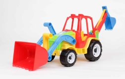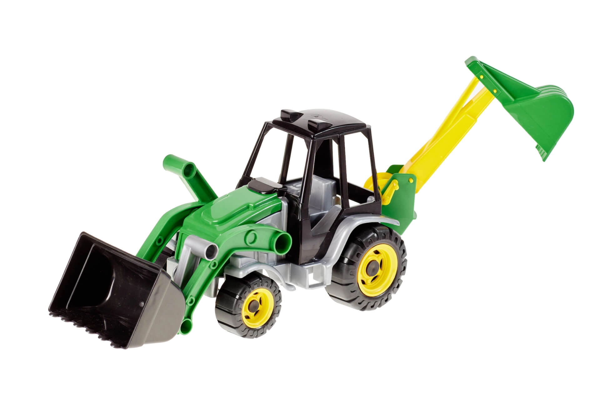 Deze multifunctionele tractor met graafmachine biedt kinderen realistisch bouwplezier. Dankzij de bewegende voorlader en de achterste graafschep kunnen ze materialen verplaatsen, laden en uitdiepen in hun fantasiewereld. De robuuste constructie is geschikt voor spelen binnen en buiten.