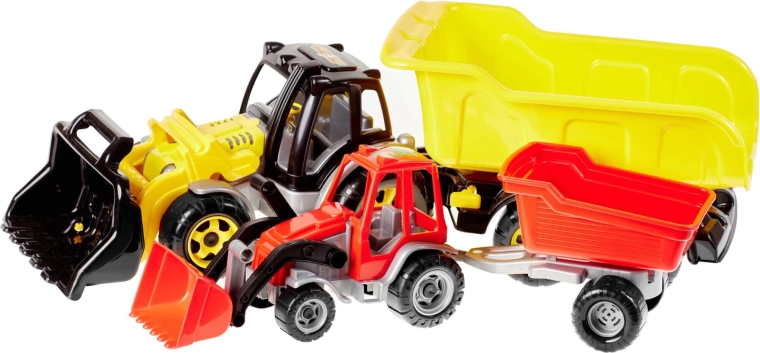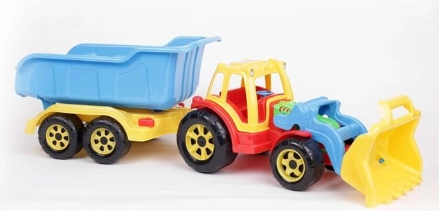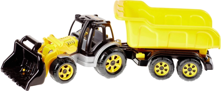 Deze tractor met lader en aanhanger is een geweldige keuze voor jonge liefhebbers van bouwmachines. Gemaakt van materialen zonder zware metalen, biedt hij de veiligheid en betrouwbaarheid die ouders waarderen. De robuuste constructie weerstaat zelfs intensiever spel.