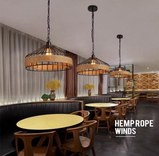 Deze plafondlamp combineert vintage stijl met moderne details en is een perfecte decoratie voor uw woonkamer of eetkamer, vooral als verlichting boven een tafel, bank of bar. Dankzij het originele ontwerp en de stevige afwerking van metaal en henneptouw komt de lamp ook uitstekend tot zijn recht in moderne restaurants, hotels, cafés en bars. Ze hangt aan een ⚓ originele ketting en heeft een standaard E27 fitting voor de lichtbron.