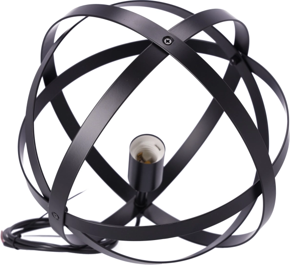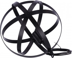 De bolvormige constructie met geweven metalen banden geeft de lamp een geometrische en originele uitstraling.