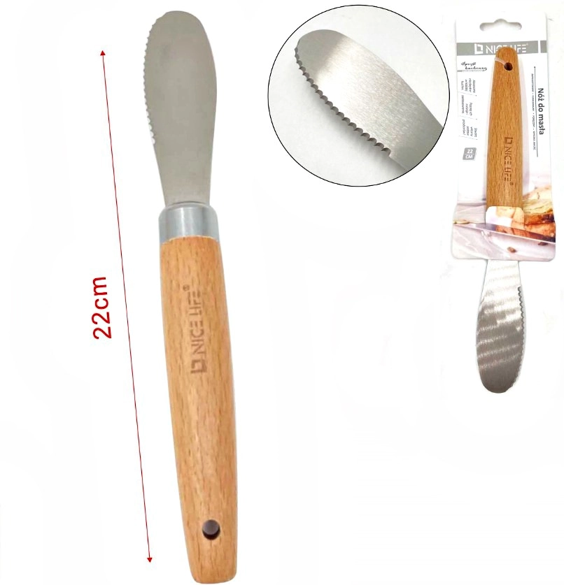 Een botermes is een onmisbaar onderdeel van elke keukenuitrusting. Iedereen weet hoe belangrijk het ontbijt is, dus zorg ervoor dat de sandwiches die je maakt voedzaam zijn. Ideaal voor het smeren van boter of zachte kaas op brood, aanbevolen voor dagelijks gebruik. Het mes is gemaakt van hoogwaardig roestvrij staal met een houten handvat.