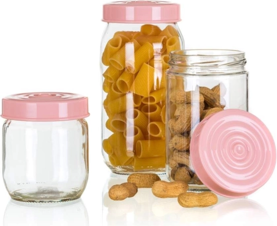 LINZI 3 stuks glazen voorraadpotten, roze