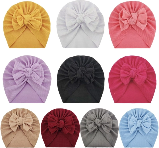 Een modieuze turban is een opvallende aanvulling op de outfit van een kleine modeliefhebber! Naadloze turban met een schattige strik aan de voorkant. Kan het nog beter?