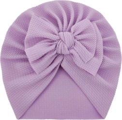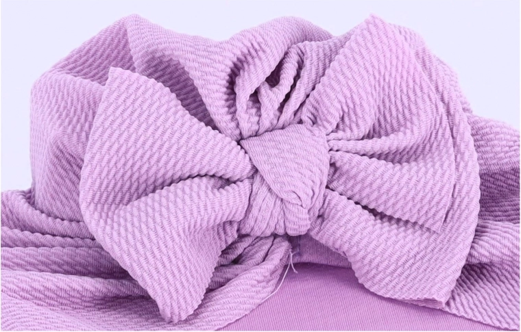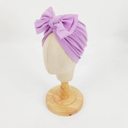 Stijlvolle kinder turban met een grote strik in een zachte paarse tint, ideaal voor dagelijks gebruik en feestelijke gelegenheden. Dankzij het zachte, rekbare materiaal sluit hij prettig aan op het hoofdje, behoudt hij zijn vorm en biedt hij lichte warmte in het voorjaar en najaar. Een geweldige keuze als praktisch en schattig accessoire en als cadeau voor kleine dametjes.