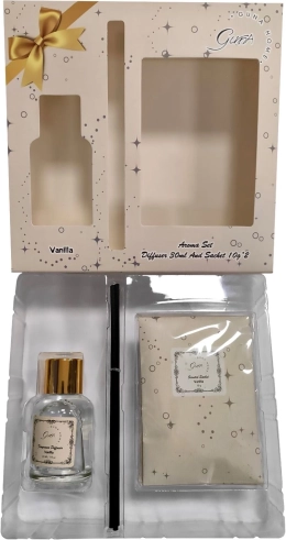 - Inhoud van de set: 30 ml diffuser, 2 x 10 geurzaksjes, geurstokjes.