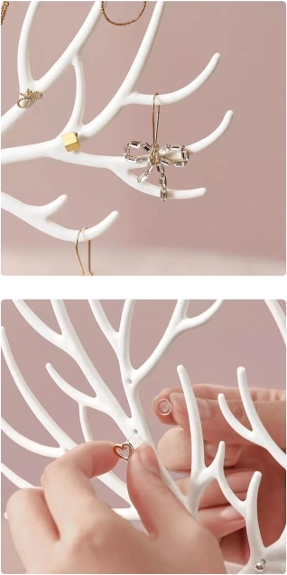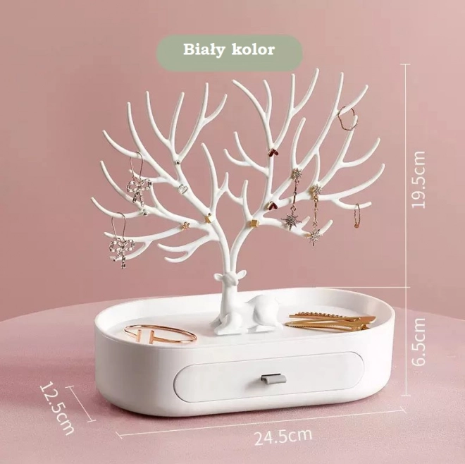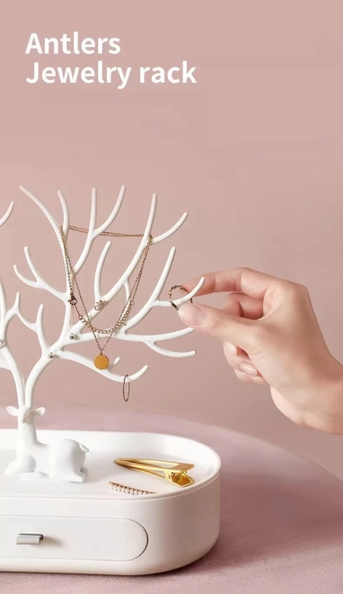 De standaard staat prachtig als een op zichzelf staande decoratie en heeft bovendien een praktische functie. Hij kan worden gebruikt om sieraden zoals armbanden of ringen op te bergen. De kleur past perfect bij elk interieur en de inrichting ervan. Daarnaast heeft hij een kleine lade waarin ook meerdere sieraden passen.
