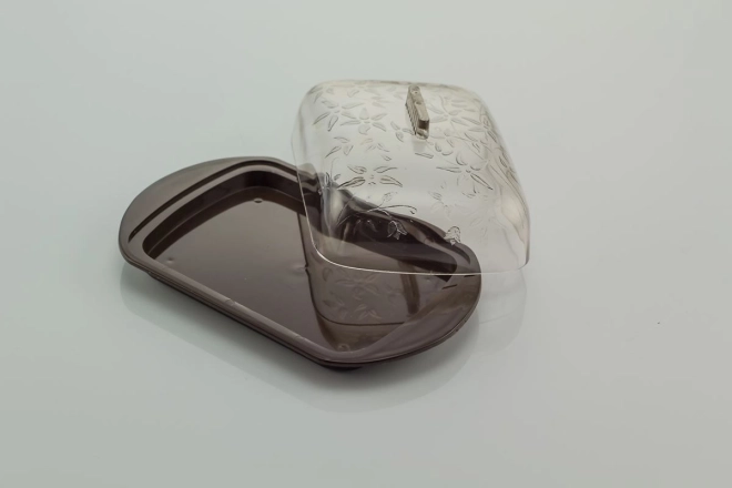 Ovaal schaaltje van hoogwaardig materiaal met een transparant deksel met een subtiel bloemmotief. Zeer praktisch, ideaal voor uw keuken.