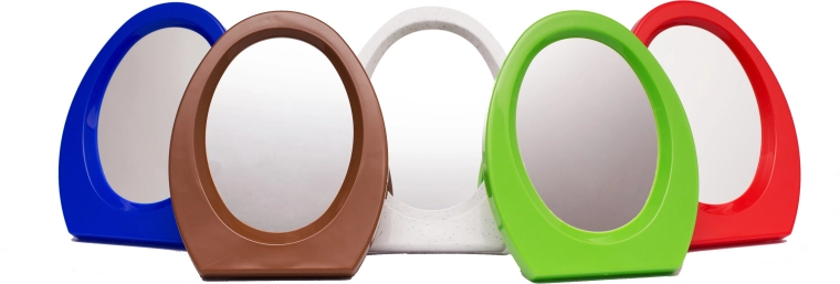 Hoogwaardige cosmetische spiegel met kunststof behuizing. Toont zelfs de kleinste details, vergemakkelijkt het aanbrengen van make-up, het stylen van het kapsel en thuiscosmetische behandelingen. De spiegel heeft een stabiele basis die voor stabiliteit zorgt.
