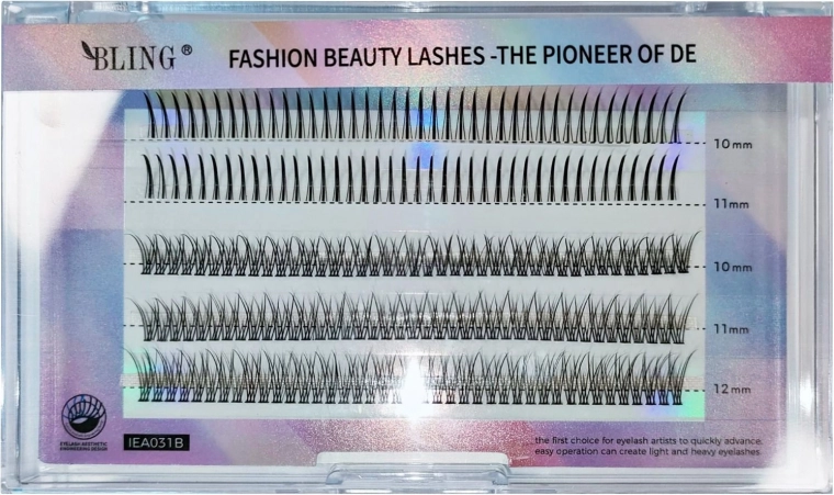 Zijden wimperplukjes van het merk BLING zijn uitzonderlijk zacht en licht. Ze worden gebruikt om wimpers te verlengen en te verdikken. Eén plukje bevat tot 10 haartjes. De dikte van 0,15 mm zorgt voor een natuurlijk verdikkend effect. In één verpakking zitten 60 plukjes. Verkrijgbaar in 4 lengtes en twee soorten krul.