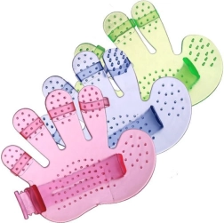 De massage- en washandschoen is een perfecte hulp bij de verzorging van uw huisdier. Regelmatig gebruik zorgt voor een glanzende en gezonde vacht. De handschoen stelt u in staat om uw huisdier grondig te wassen en te masseren en tegelijkertijd de haren te verzamelen. Dankzij de verstelbare straps past de handschoen op elke handmaat.