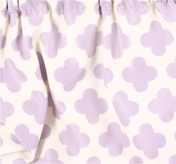 Zachte, duurzame textielstof die gemakkelijk te onderhouden is en prettig aanvoelt. Het patroon in lavendeltinten geeft het tasje een vrouwelijke stijl.