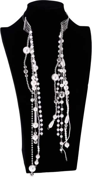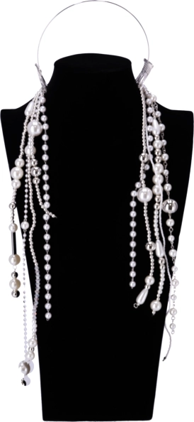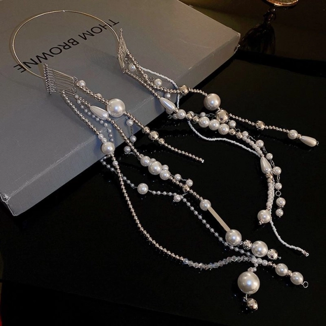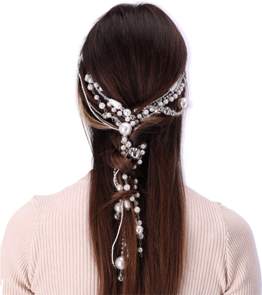 De haarband zorgt voor een verfijnde uitstraling dankzij de kunstparels en kettinkjes.