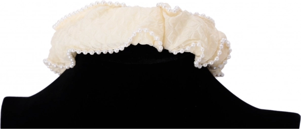 Deze witte haarband met kleine pareltjes is een stijlvol accessoire dat zelfs een eenvoudige outfit naar een hoger niveau tilt. De textiele afwerking met ruche-effect en de subtiele parelrand ogen elegant en toch verfijnd. Prachtig bij los haar, een staart of een knot.