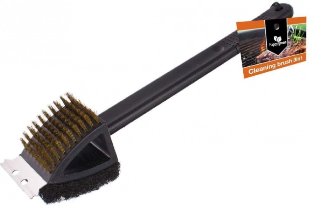 Houten reinigingsborstel met een diameter van 38 cm, bedoeld voor het onderhoud en reinigen van grills en roosters. De borstel is een praktische hulp bij het schoonmaken van de grill na het grillen.
