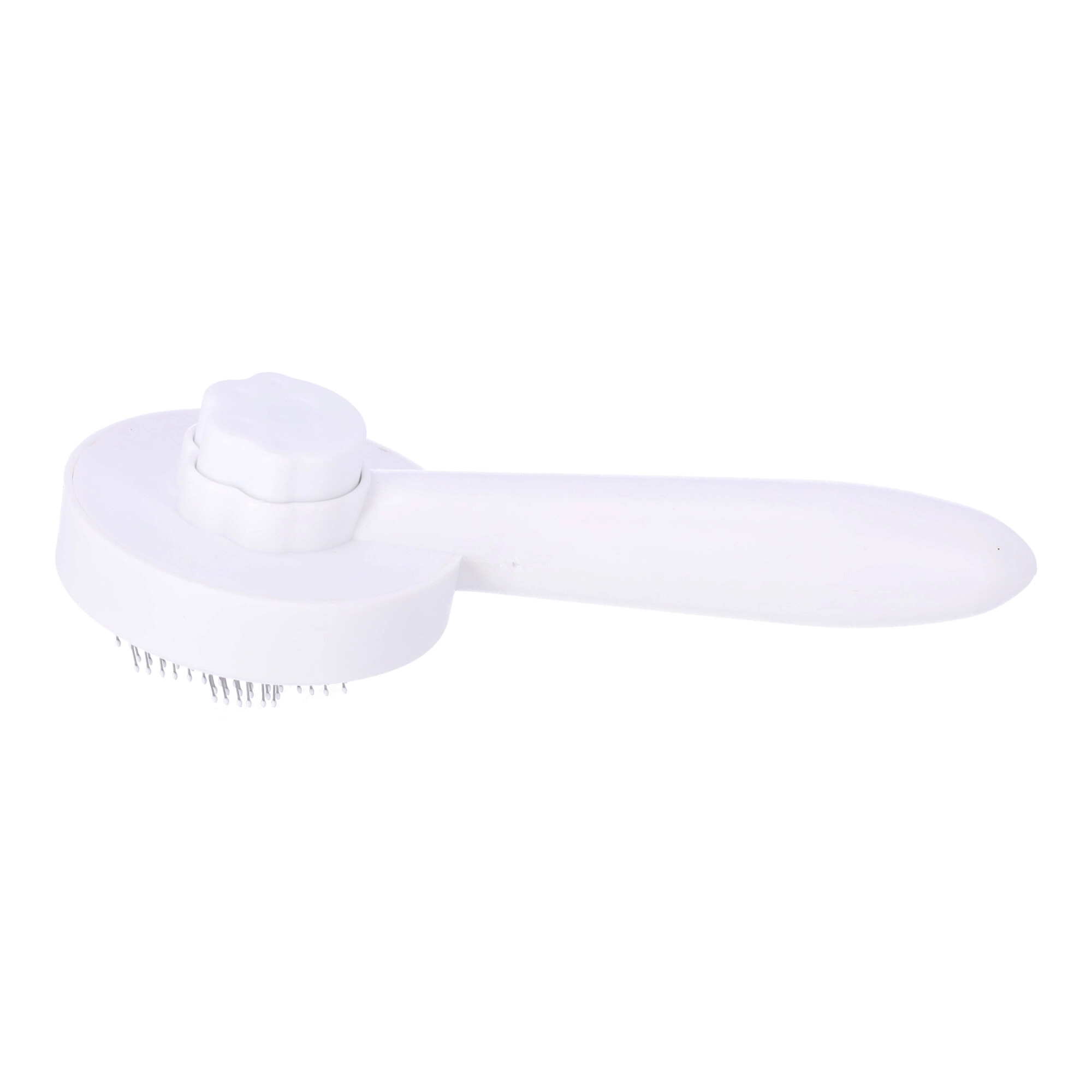 Praktische borstel voor honden en katten verwijdert effectief losse haren en klitten en masseert tegelijkertijd zachtjes de huid. Dankzij de ergonomische handgreep ligt hij comfortabel in de hand en glijdt niet weg, terwijl de afgeronde metalen pinnen zacht zijn voor de huid. Voorzien van een knop voor snel reinigen, zodat je met één druk op de knop de haren eenvoudig uit de borstel loslaat. Geschikt voor kort- en langharige huisdieren en voor dagelijkse verzorging van een gezonde, glanzende vacht.