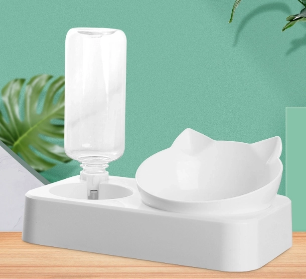 Bak voor honden en katten 2-in-1 met automatische waterdispenser - wit