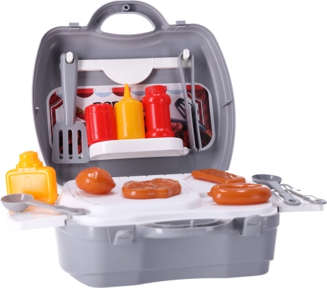 Deze set is ideaal voor elke kleine kok die droomt ervan een grillmeester te worden, zelfs als het buiten bewolkt is. De hele set sluit gemakkelijk in de koffer, zodat kinderen hem overal mee naartoe kunnen nemen. Dit product is een perfect cadeau-idee.