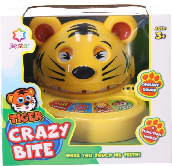 “Bijtende Tijger” is een behendigheidsspel dat leuk is voor het hele gezin en kan worden gespeeld door kinderen vanaf 3 jaar. Het doel van het spel is om een tandartscontrole bij de tijger uit te voeren. Deze controle moet voorzichtig gebeuren, zodat het dier niet onrustig wordt, anders sluit het zijn bek en bijt het in je vingers. Het speelgoed is volledig veilig en zorgt voor veel speelplezier.
