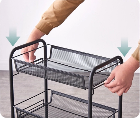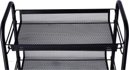 Dankzij de vier wielen is het rek eenvoudig te verplaatsen, wat geweldig is voor degenen die flexibiliteit nodig hebben bij het inrichten van ruimtes. Gemaakt van hoogwaardig metaal, dat een lange levensduur en stabiliteit garandeert.