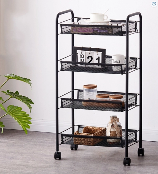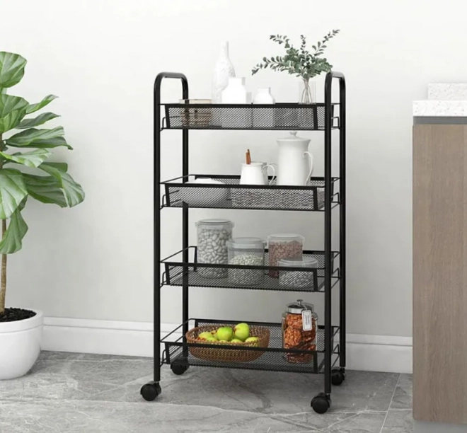 Het multifunctionele rek is ideaal om de opbergruimte in uw huis te maximaliseren. De vier ruime planken maken opslag mogelijk van voedsel, servies en schoonmaakmiddelen in de keuken of cosmetische en hygiëneproducten in de badkamer.
