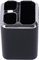 Praktische beker met meerdere vakken houdt tandenborstels, tandpasta en kleinigheden overzichtelijk bij elkaar. Het metalen accent en het glanzende oppervlak maken moderne badkamers compleet en vereenvoudigen het onderhoud.