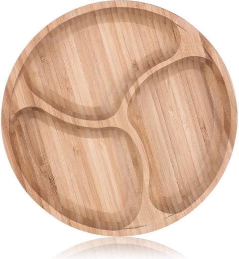De gedeelde kom Brillante van natuurlijk bamboe is ideaal voor het serveren van diverse lekkernijen. Dankzij de gedeelde houten tussenschotten kunt u meerdere soorten hapjes op één schaal serveren.