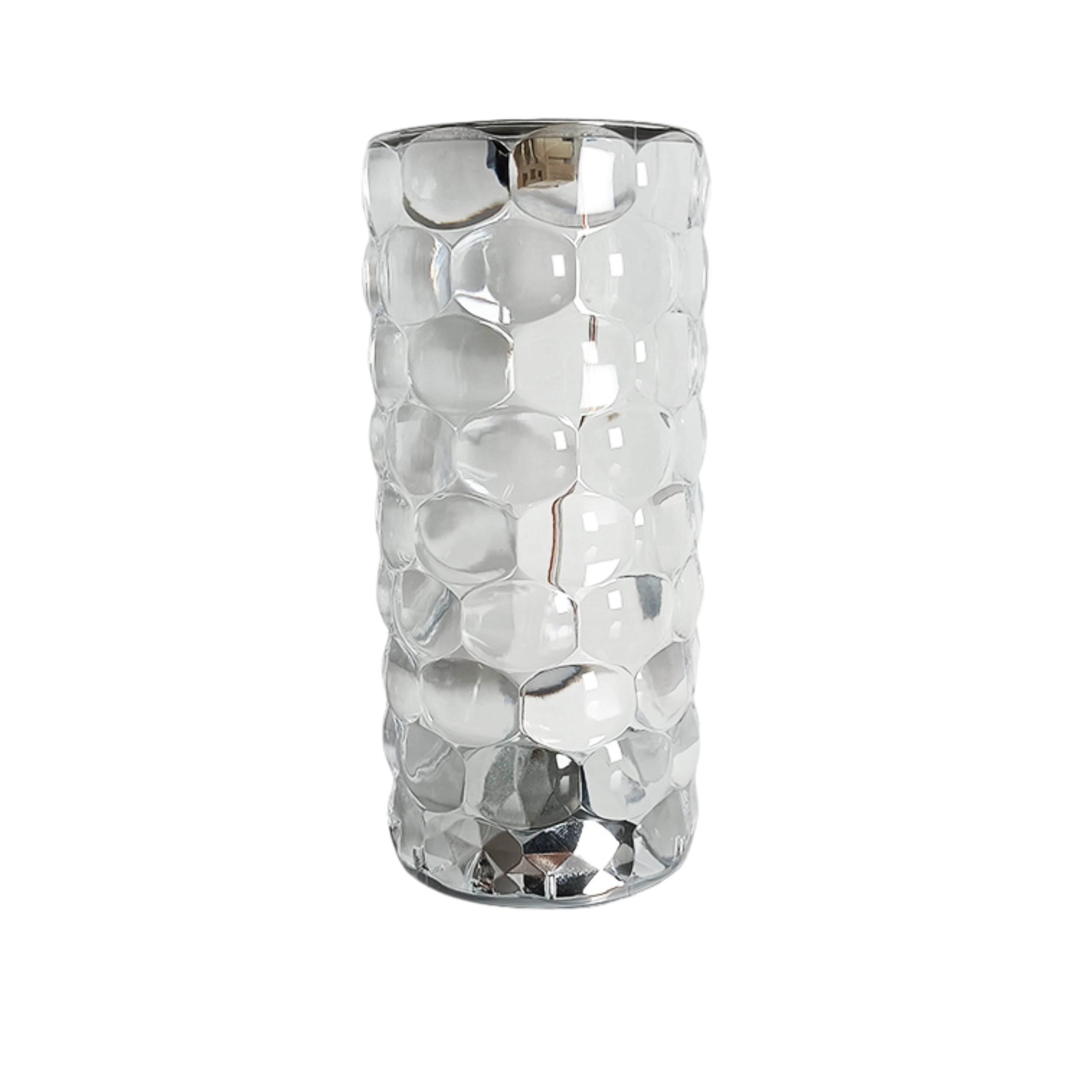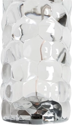 Het facetgeslepen, kristallijne oppervlak verspreidt het licht in indrukwekkende brekingen en schitteringen, die een luxe sfeer creëren op elke tafel of plank.