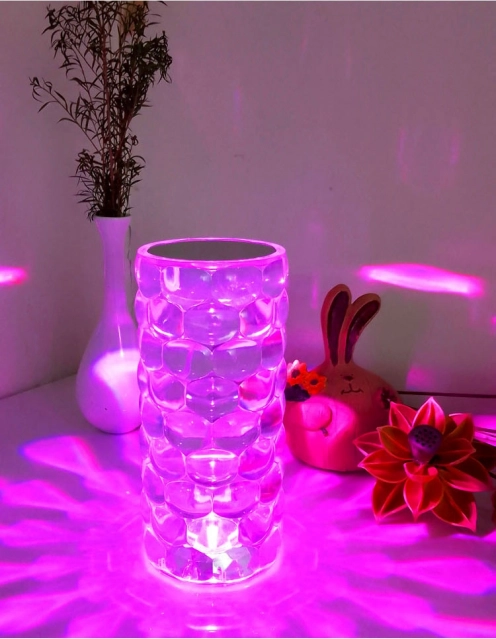 Deze design kristallen LED-lamp is een ideale decoratie voor het nachtkastje, een dressoir of de salontafel. De cilindrische behuizing met facetpatroon breekt het licht prachtig en versterkt het effect van de 16‑kleuren RGB verlichting – van zacht warm licht tot uitgesproken kleurrijke scènes.