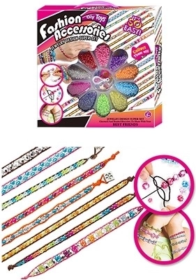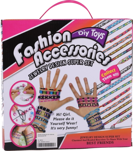 Ontdek het plezier van creëren met de creatieve set voor het maken van kettingen, boordevol kleurrijke kralen, versieringen, letters en gekleurde koordjes. Eenvoudig in gebruik dankzij de kunststof inrijgring.