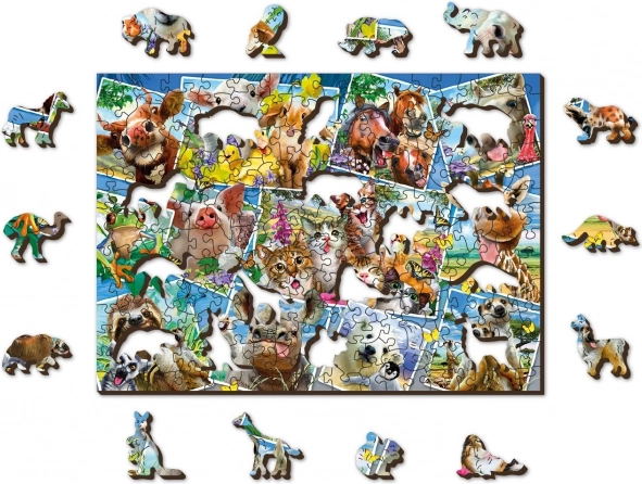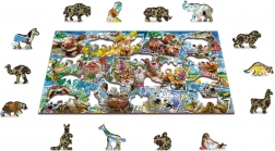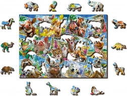 De houten puzzel WOODEN CITY met het thema “Dierenansichtkaarten” biedt een unieke legervaring. Dankzij de dubbelzijdige uitvoering kun je kiezen tussen leggen volgens de afbeelding op de voorzijde of volgens de vormen op de achterzijde met een repetitief patroon. Laser-geaccentueerde details geven de afzonderlijke stukjes een indrukwekkende uitstraling en sommige daarvan – in de vorm van dieren, gebouwen of objecten – kunnen zelfstandig staan als kleine figuren.