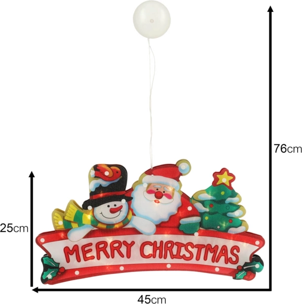 Deze charmante kerst LED-decoratie met een motief van de Kerstman, een sneeuwpop en een kerstboom brengt een feestelijke sfeer in elk interieur. Het is gemakkelijk te bevestigen met een zuignap en wordt gevoed door batterijen voor een handige plaatsing zonder onnodige kabels.