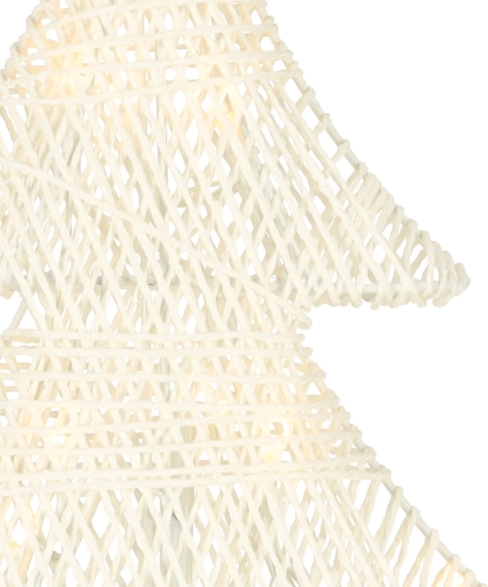 Een sierlijke kerstboom van gevlochten materiaal die warm licht uitstraalt, perfect voor feestelijke decoratie.
