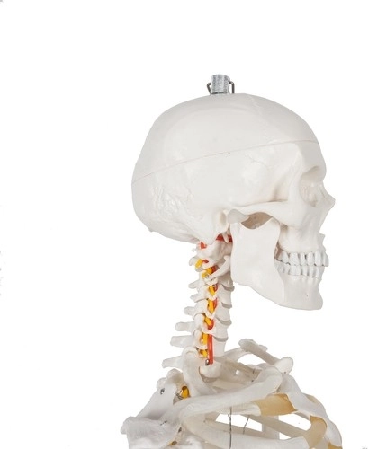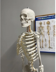 Het anatomisch model van het menselijk skelet, met een grootte van 180 cm, is een ideale tool voor het onderwijzen en bestuderen van het menselijk lichaam. Gemaakt van duurzaam PVC-plastic, staat het stevig op een aluminium standaard met wielen, wat het verplaatsen naar behoefte vergemakkelijkt.