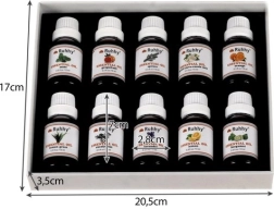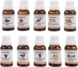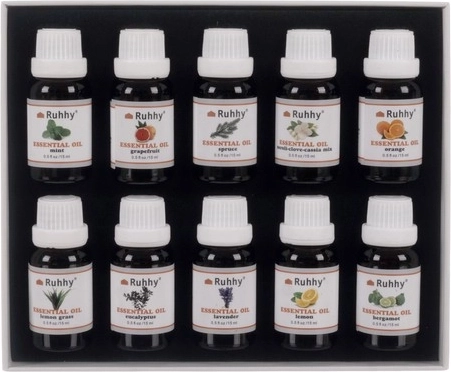 De set bevat 10 verschillende geuren zoals eucalyptus, sinaasappel, munt, lavendel en meer. Elke fles heeft een inhoud van 15 ml.