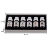 De set bevat zes verschillende geuren zoals eucalyptus, sinaasappel, tea tree, munt, lavendel en den. Elke olie is zorgvuldig verpakt in een flesje van 10 ml.