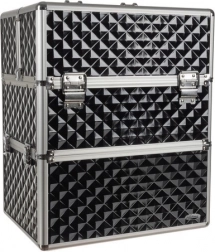 De cosmetische koffer XL Soulima is ontworpen om te voldoen aan de behoeften van de moderne vrouw die op zoek is naar een comfortabele en stijlvolle manier om haar cosmetica en persoonlijke spullen te organiseren. Het is gemaakt van hoogwaardig plastic en metaal, de zwarte en zilveren kleur zorgt voor een elegante uitstraling.