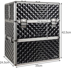 De afmetingen van de koffer zijn 42,5 x 35 x 24,5 cm bij een gewicht van 3,05 kg, en de koffer is ideaal voor reizen en bescherming van uw cosmetische producten tegen schade of verontreiniging.