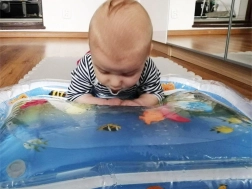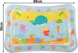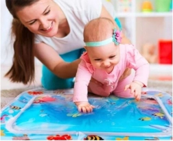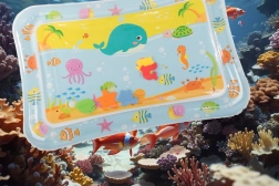 De opblaasbare sensorische watermat is ontworpen om de zintuigen van uw kind te stimuleren via verschillende texturen, kleuren en vormen. Kinderen kunnen spelen met de bewegende vormen binnenin de mat, wat helpt bij de ontwikkeling van hand-oogcoördinatie.