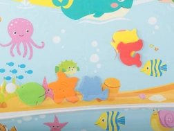 De mat is gemaakt van hoogwaardig, niet-toxisch PVC, wat veiligheid voor de kinderhuid garandeert. De opblaasbare constructie biedt een zachte en comfortabele speeloppervlakte.