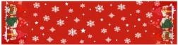 Elegante rode tafelloper met witte sneeuwvlokken en sterretjes, aangevuld met charmante kabouters met cadeaus aan de uiteinden, die direct een feestelijke en knusse sfeer creëert. Komt prachtig tot zijn recht op een wit tafelkleed of solo en combineert moeiteloos met klassiek servies.