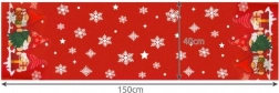 Rode basis met witte sneeuwvlokken en sterren, aan de uiteinden een decor van kabouters met cadeautjes – de perfecte aanvulling voor de kersttafel.