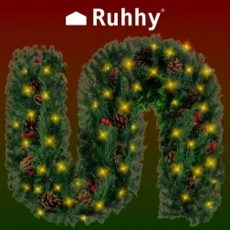 Creëer thuis de perfecte feestdecoratie met deze rijk versierde guirlande die realistisch naaldgroen combineert met natuurlijke elementen. De geïntegreerde warmwitte LED-verlichting benadrukt de kerstsfeer en geeft je interieur een aangenaam, sfeervol licht. Dankzij de flexibele constructie is de guirlande eenvoudig te vormen, te buigen en aan je ruimte aan te passen.