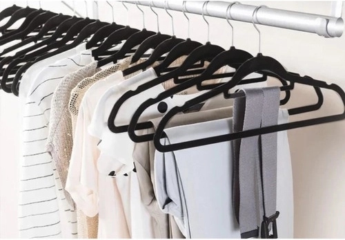 - Hoogwaardig materiaal: De hangers zijn gemaakt van plastic en bedekt met fijn velours, dat voorkomt dat kleding wegglijdt.