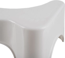De voetensteun corrigeert de lichaamshouding tijdens het gebruik van het toilet en vergemakkelijkt de stoelgang. Hij simuleert onze natuurlijke houding en ontspant de betrokken spieren. Het is een eenvoudige en beproefde manier om constipatie te verlichten. De kruk verhoogt de hoek; in de hurkpositie (35°) is de sluitspier volledig ontspannen, wat een gemakkelijke en volledige lediging mogelijk maakt.
