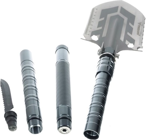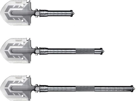 De Trizand schop combineert 16 buitengewoon nuttige functies, waardoor het het ideale gereedschap is voor kamperen, reizen of in de auto.