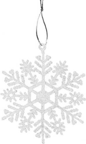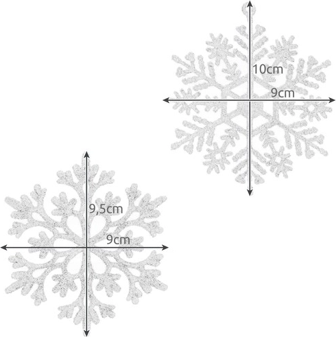 Specificaties - kleur: wit met glitter; materiaal: kunststof; aantal stuks: 12; afmetingen variant 1: 10 x 9 cm; afmetingen variant 2: 9,5 x 9 cm; gewicht: 48 g; setgewicht: 52 g.