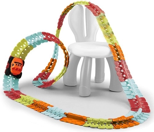 De buigzame constructie maakt het mogelijk om loopings, spiralen en bruggen te bouwen. Elke rit is anders en het plezier stopt nooit.